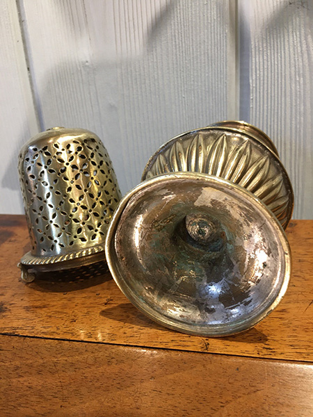 Le capuchon en dôme percé de trous en quadrille est coiffé généralement d'un fretel (disparu sur notre objet).